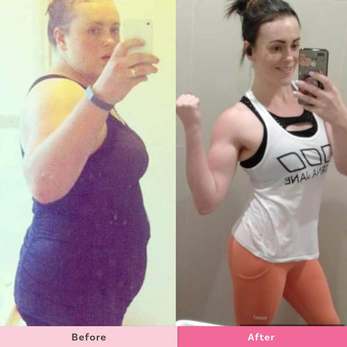 Sarah has dropped from 18 stone down to 11 stone. A size 20 to a size 10. That’s pretty awesome!