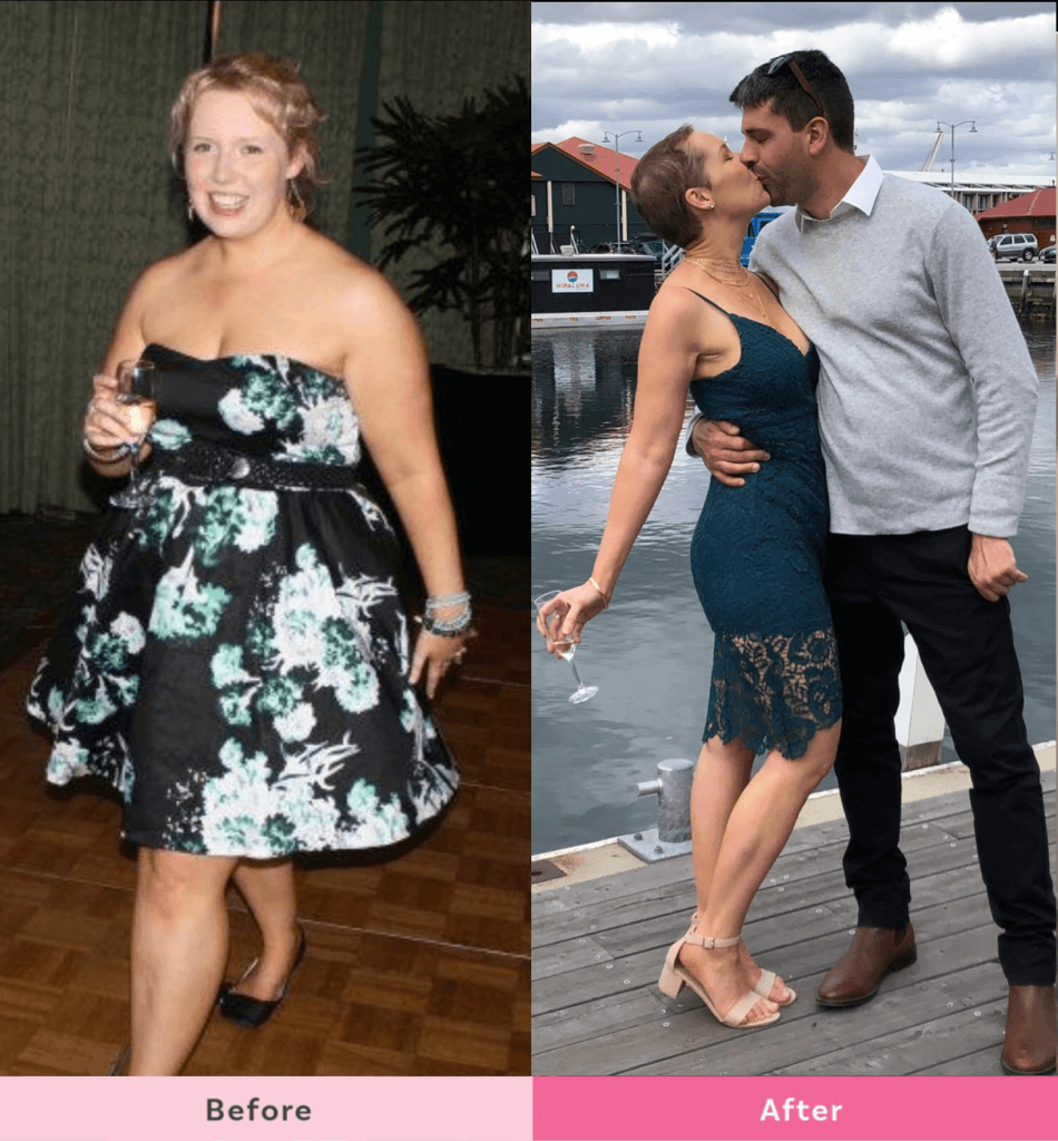 Right Photo “Now I’m 31, a mum of 2. I am active and have a great understanding about nutrition and how to fuel my body without missing out on any of the foods I love.