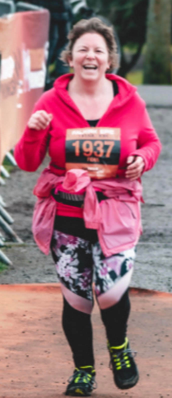 Fiona says, “I’ve never been a runner, I remember in Secondary School doing a protest walk as the final runner in a relay! It always felt like a lot of effort for little gain and I was embarrassed at being top-heavy – in those days’ sports bras weren’t heard of.
