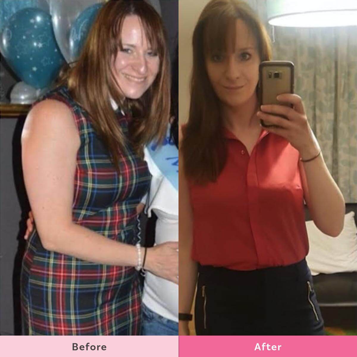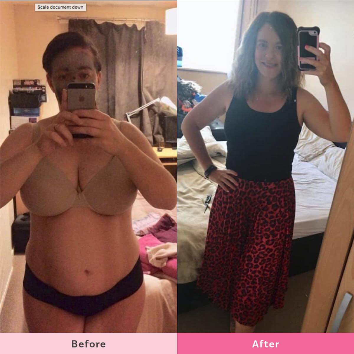 The photo on the right was this morning as I was leaving for work. Probably the first time in my life I’ve felt comfy in a skirt. No sweaty bits everywhere, no painfully rubbing thighs. I have lost approx 2 stone with The Healthy Mummy – probably more since the photo on the left was taken, but I only started properly counting in April 2018. I think more than the weight loss, the confidence and the improvement in my mental health is the biggest change I’ve experienced. I have energy, I don’t rely on chocolate and fizzy drinks to get me through the day. I am less bloated. The Healthy Mummy truly is a game changer. And it’s totally sustainable too. Thank you Healthy Mummy!”