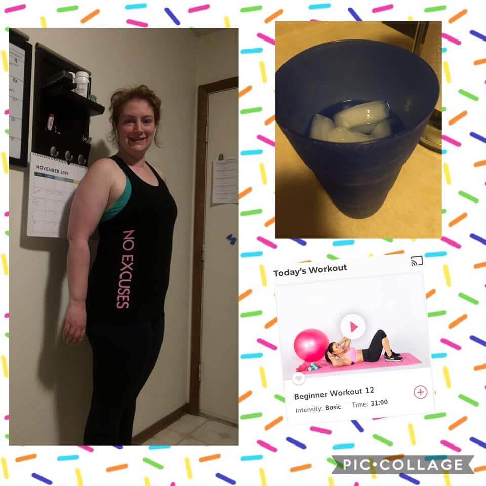 Jenny Guy Barrett says “Mondays set the tone for the week so I make sure I don’t miss my workout. My oldest is home sick and my youngest is extremely fussy, so I put a movie on for them to ensure I could get my workout. No excuses here. How are you moving today?”.