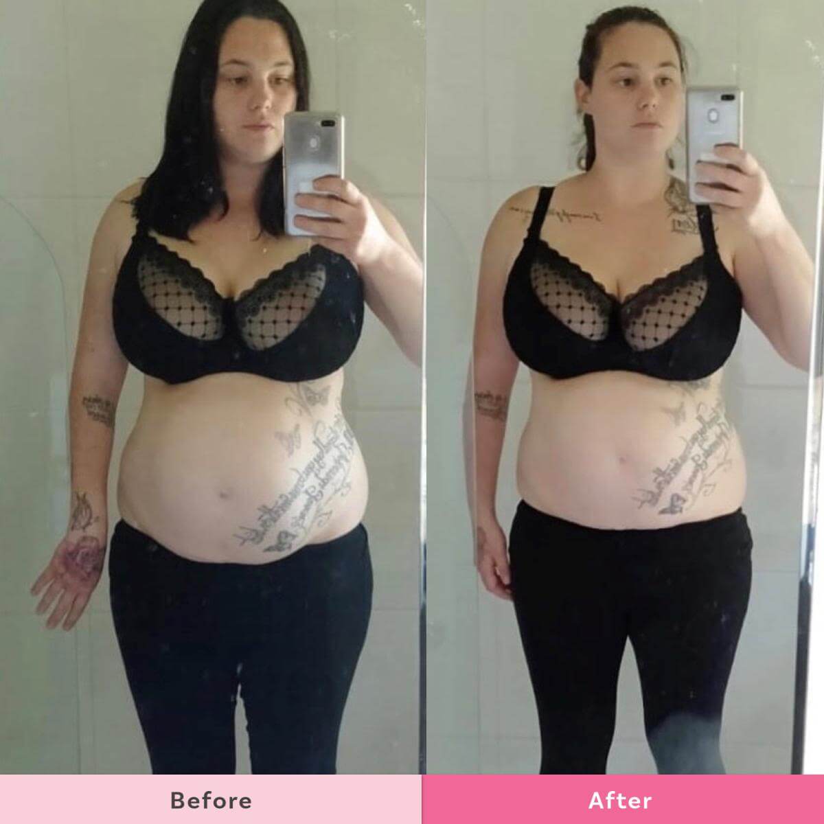 “Unfortunately, I haven’t been tracking, but I’ve brought a book so I am going to do that now. I started the Healthy Mummy squeezing into a size 16 to now fitting into a size 14/12.