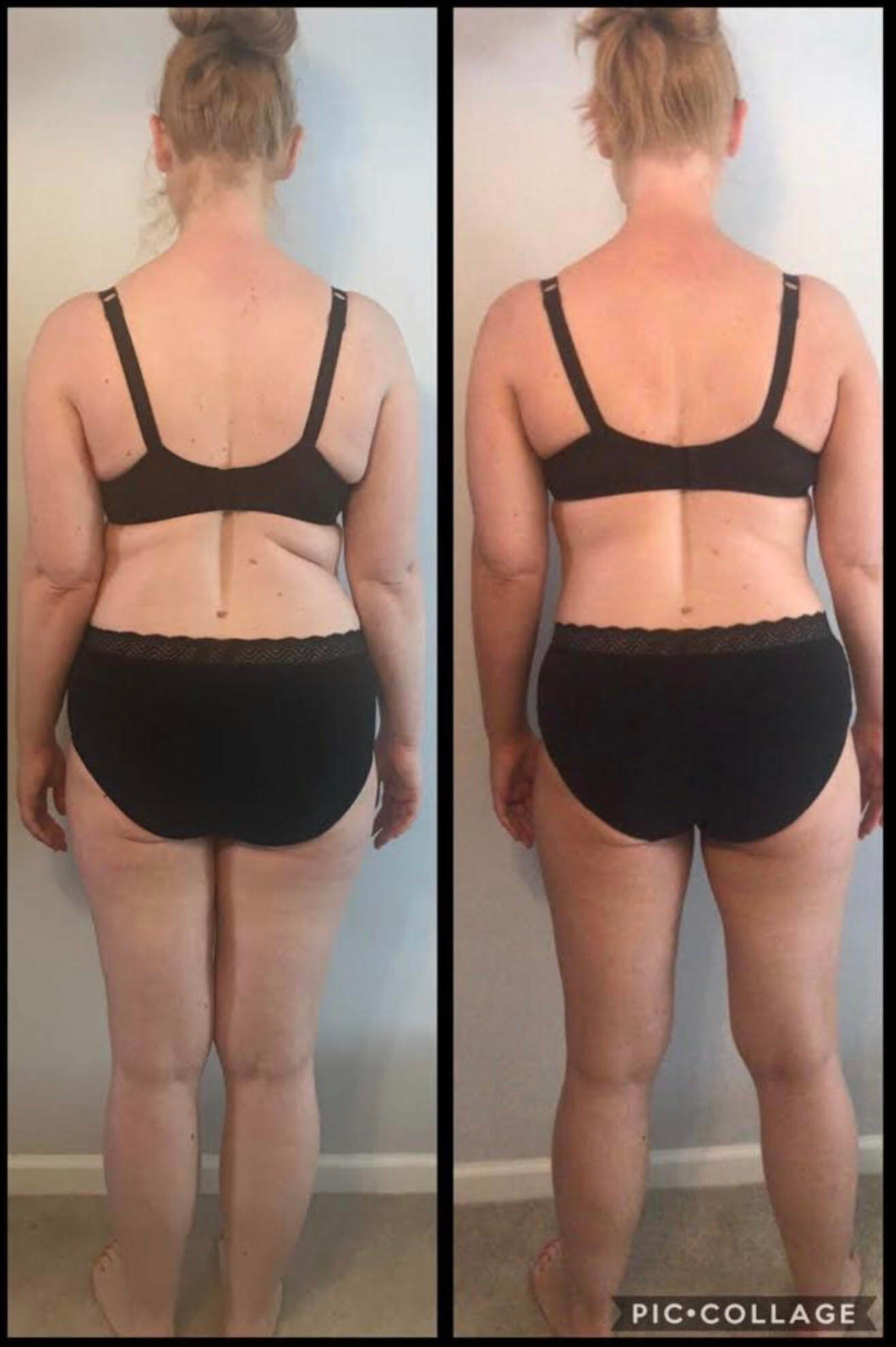 Photo on the left taken at the start of the challenge, Photo on the right taken at the end of the challenge. Goal outfit for the 12 week Global Squad challenge (Jeans).