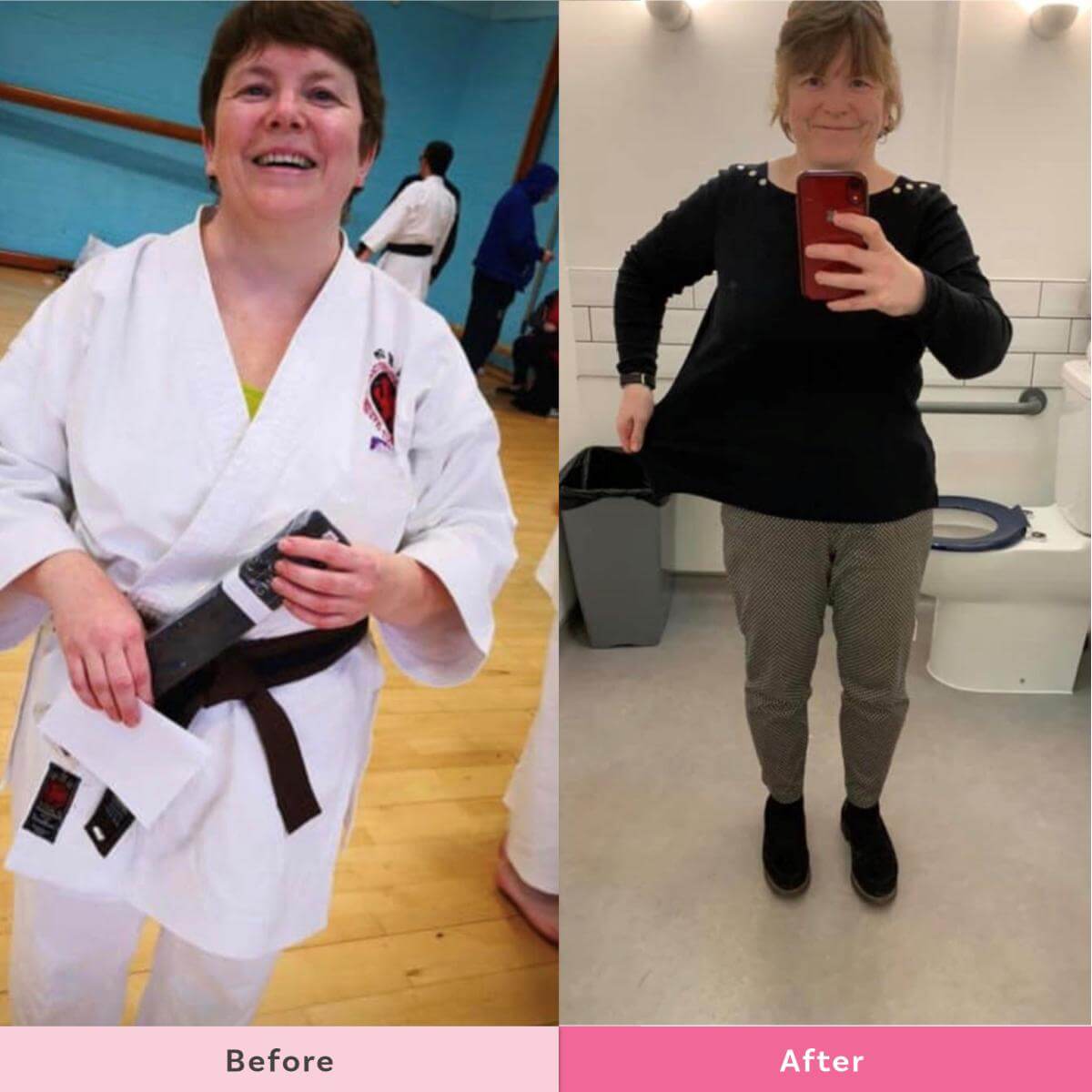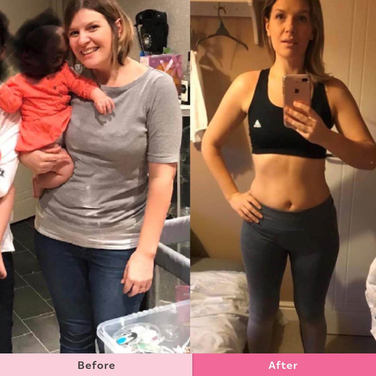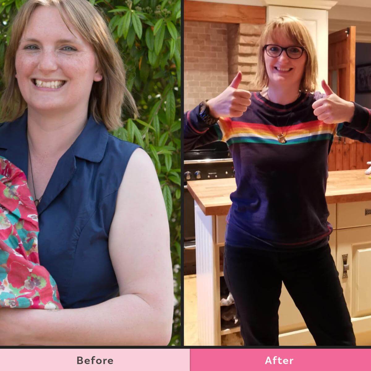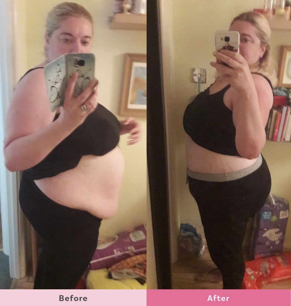 “My dress size is now a size 10 heading toward an 8. I’ve lost over 2 1/2 stone in weight, 59cm from over my body (including 16cm from around my waist), with just 8lbs to go to achieve my target weight, which I’m working hard to achieve by my one year anniversary. I have loads more energy and as a result a better mum to my kids.