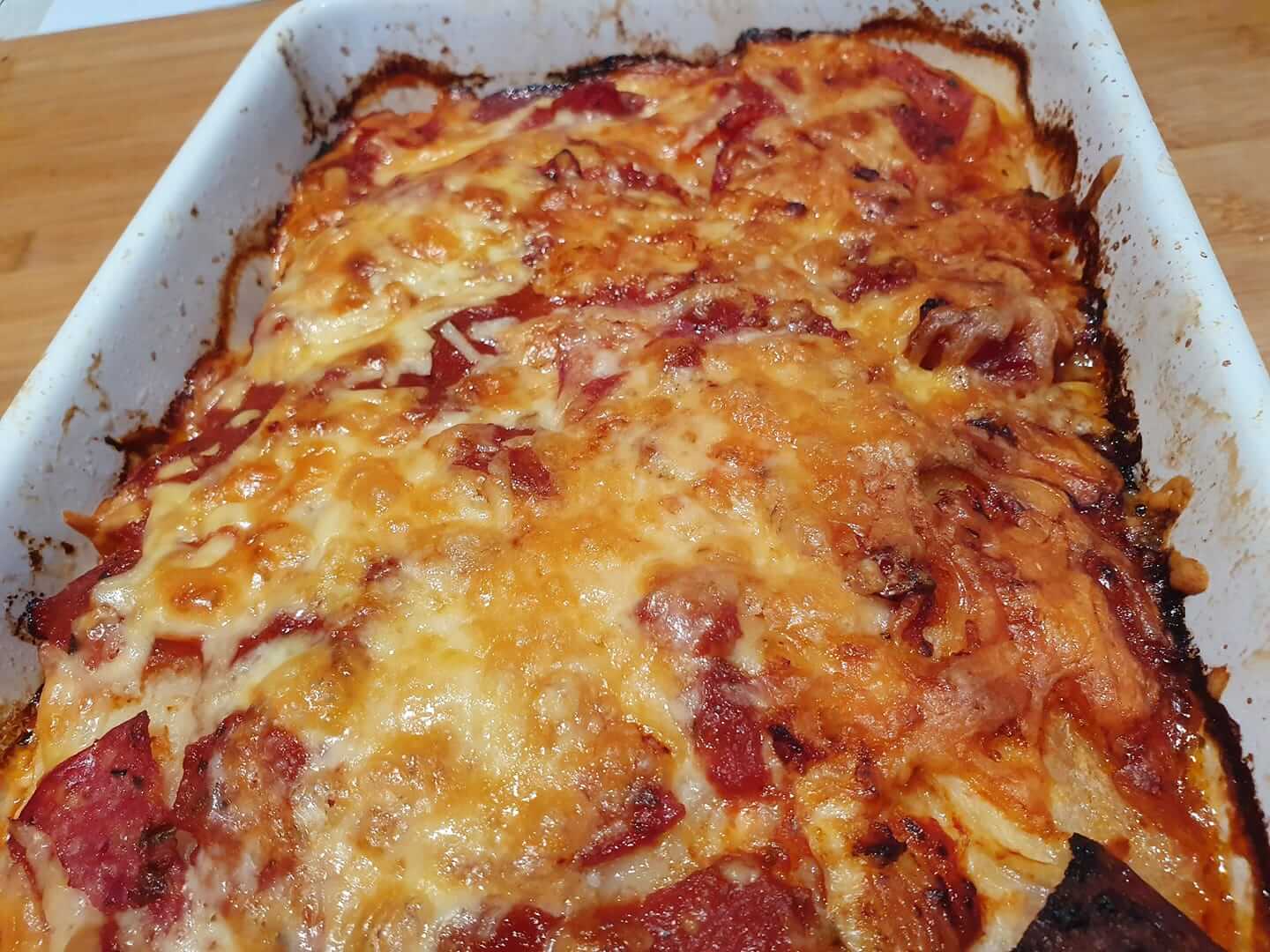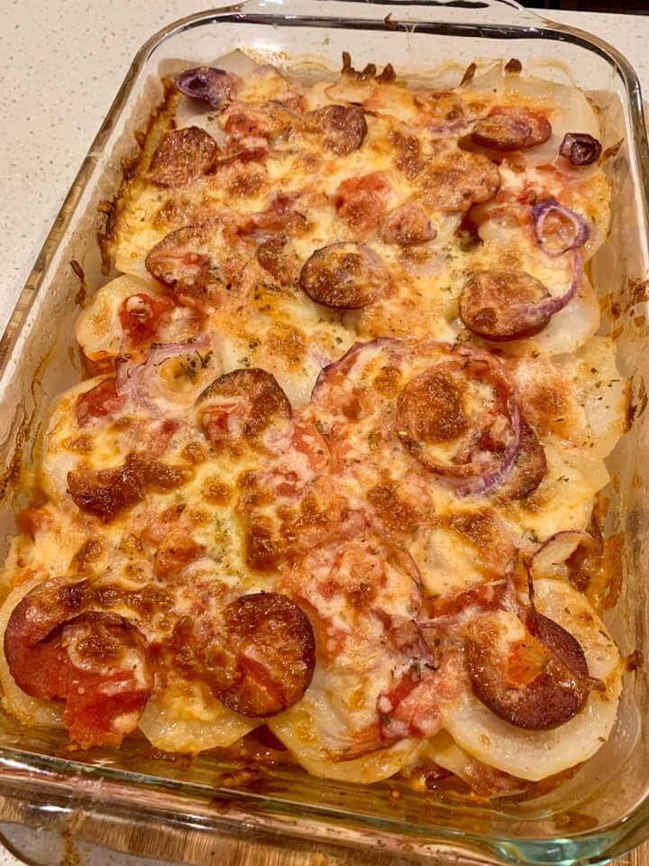 Courtney Thursfield says, “OMG!!! Pepperoni Potato Pizza Bake!! The house smells divine and this just got a massive tick of approval from hubby!“