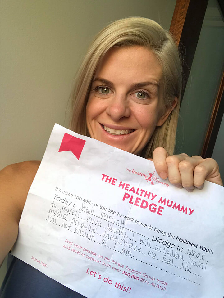 Stephnie pledges to speak more kindly to herself and pledges to unfollow social media accounts that make her feel she is not good enough as she is.