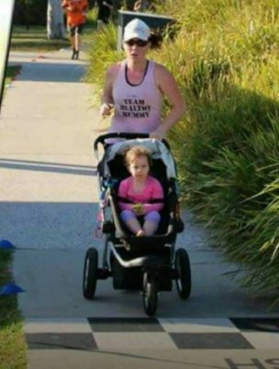 Running around pram to warm up