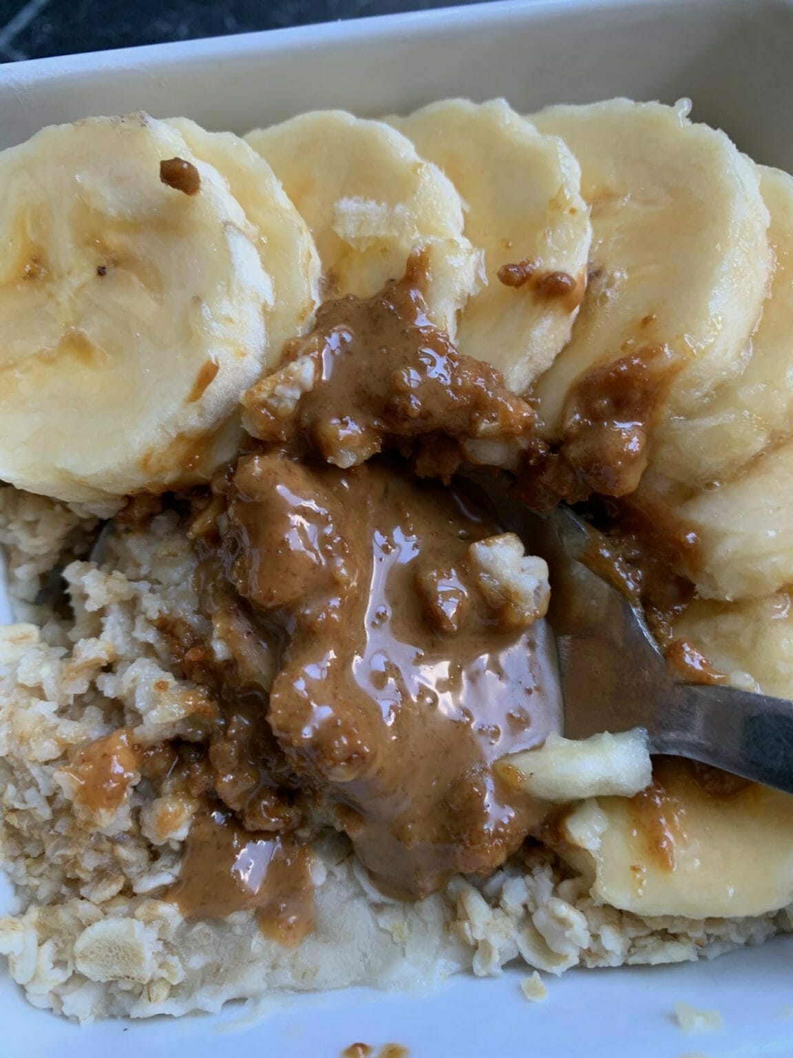 Oats are a fibre full gluten free whole grain that have many healthy benefits. Adding the banana on top makes this extra filling and nutritionally appealing!