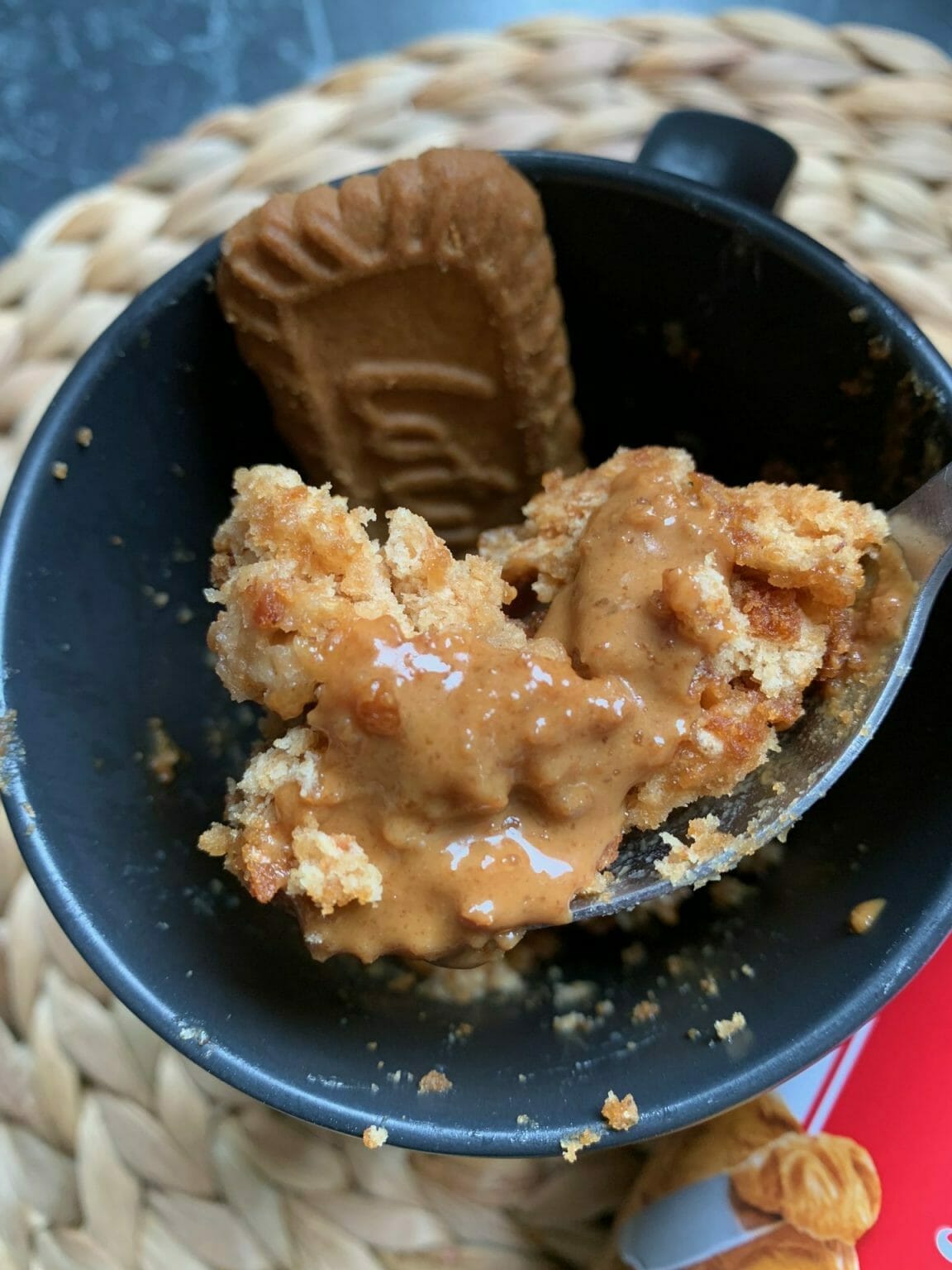 - Once the batter has formed and is fully mixed – Add 1 teaspoon of biscoff spread to the centre and fold the batter in around it