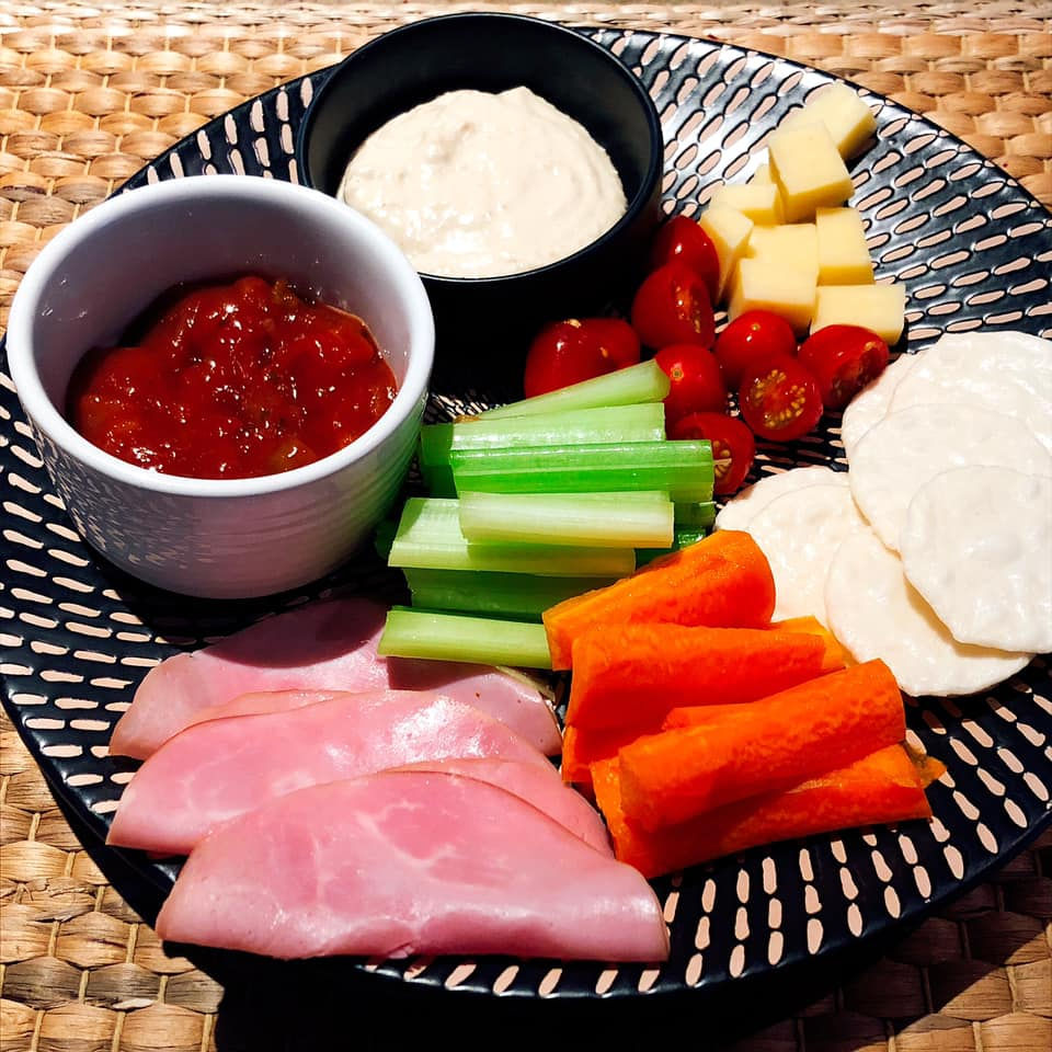 - Tasting plate. This could be done with leftovers or just with random ingredients in the fridge. You can use cold meats, cheeses, chopped up vegetables, finely sliced up bread for dip sticks, dips, yogurt and fruit. Use little containers and cute accessories to make it all fun!
