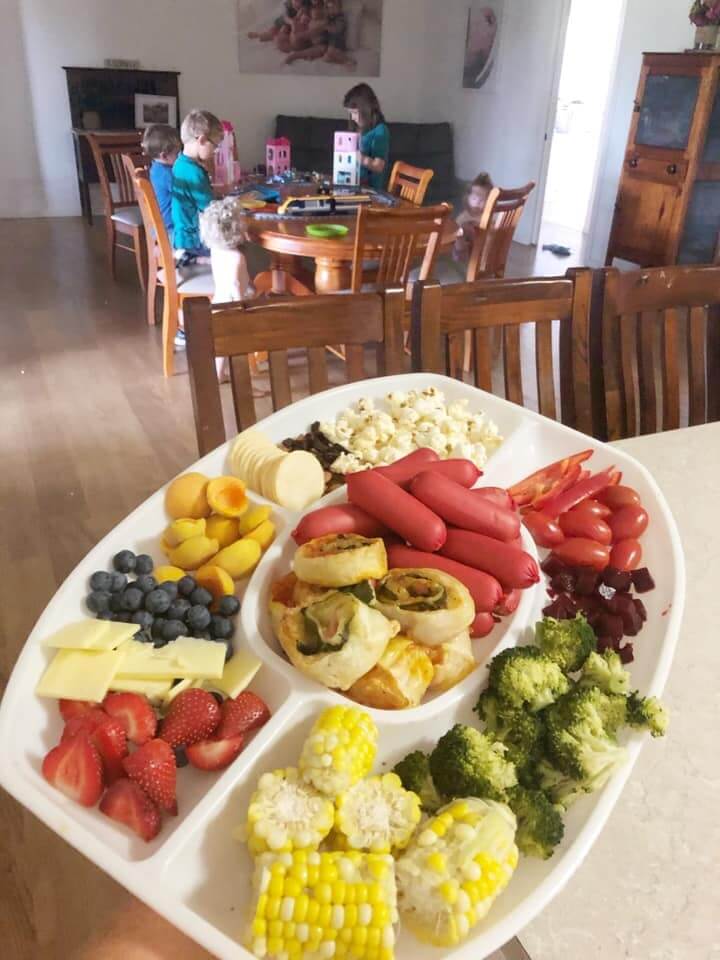“I mix it up depending on what I’ve got in the fridge. I vary the protein, sometimes it’s eggs or different meats but there’s always a good mix. My two-year-olds obviously prefer finger food, but I usually include a variety so they can see the older children using cutlery too and they can practise.
