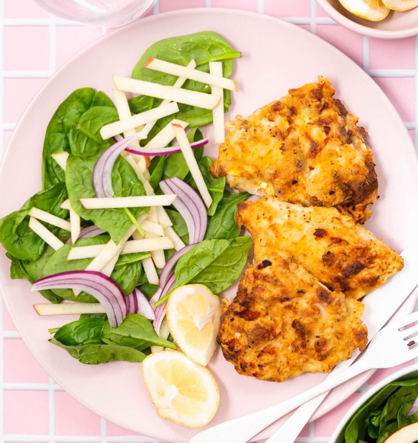 Fried Chicken with Apple Salad – 453 Calories