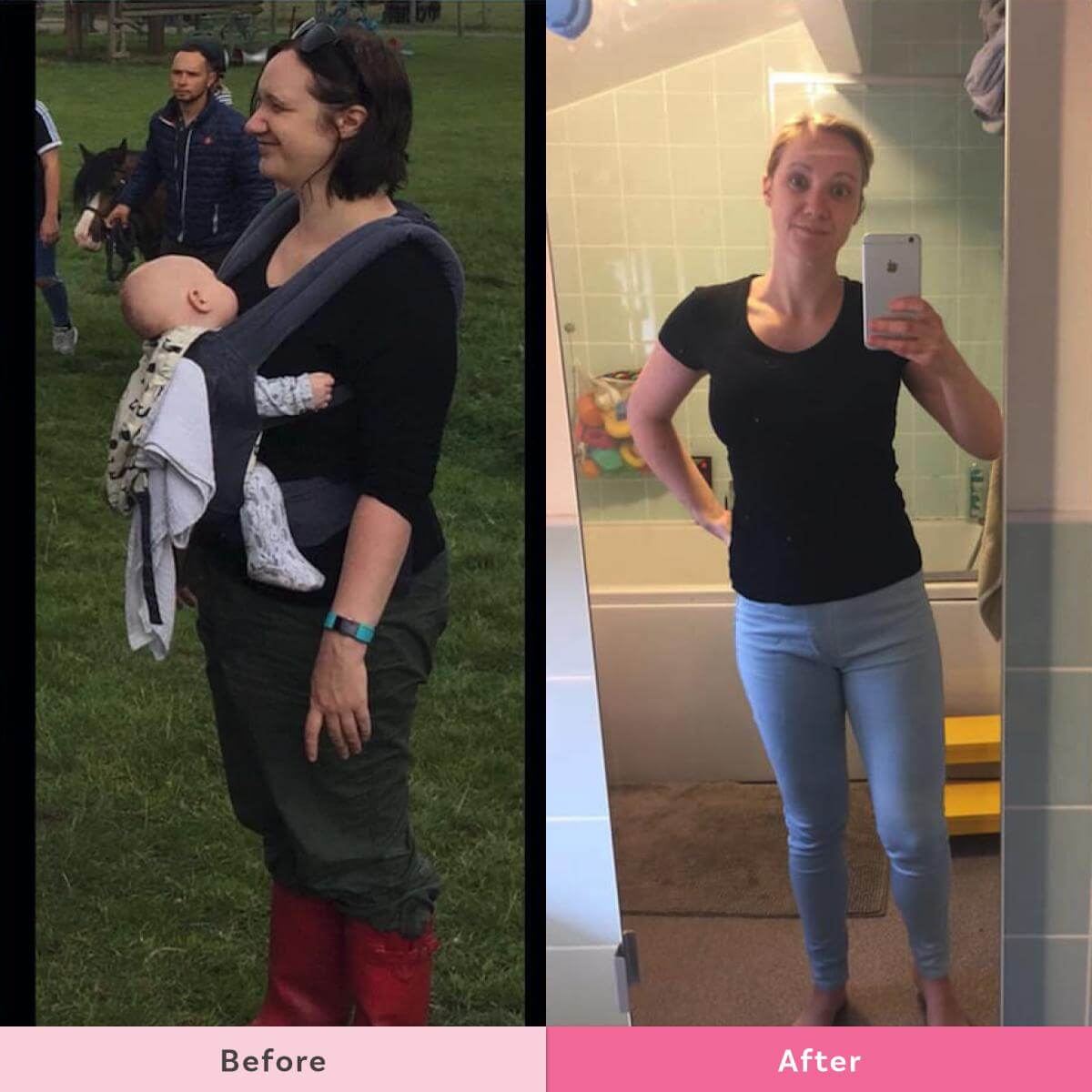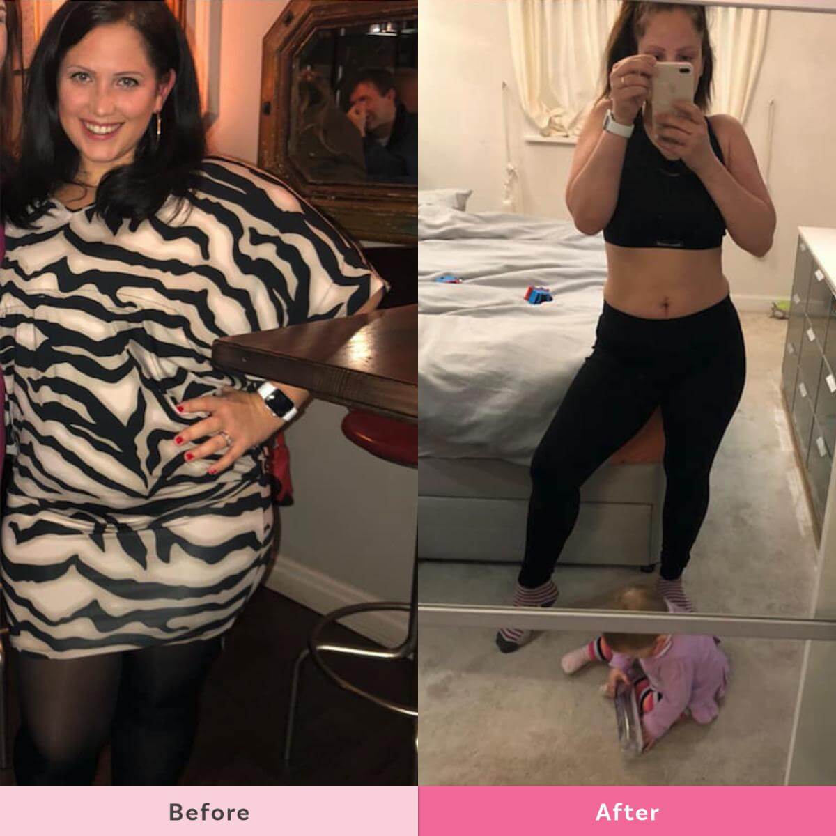 She says “I have two little monkeys, I’m still breastfeeding my youngest who is eight months and my other one is nearly three years old. I was really not happy with the way I looked and I refused to buy size 16 clothes and nothing fitted me anymore. Now I’m a size 10!
