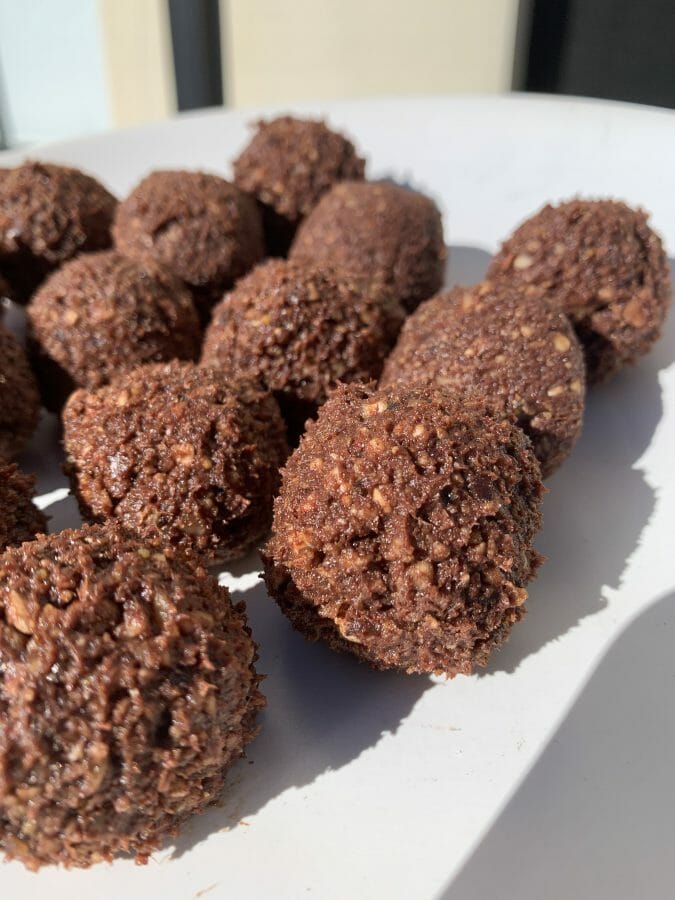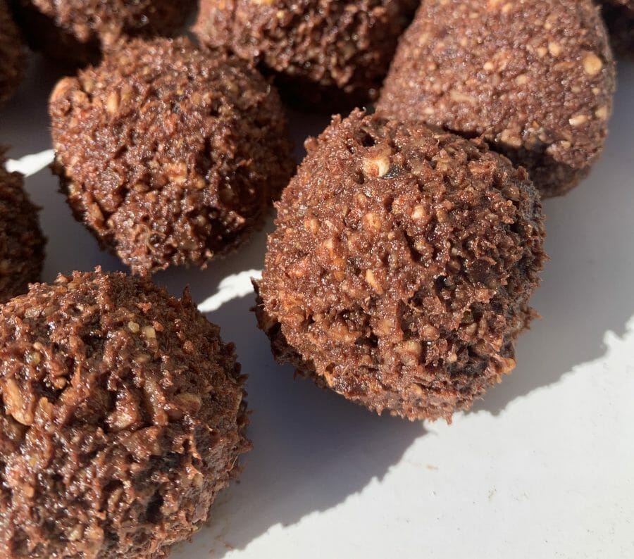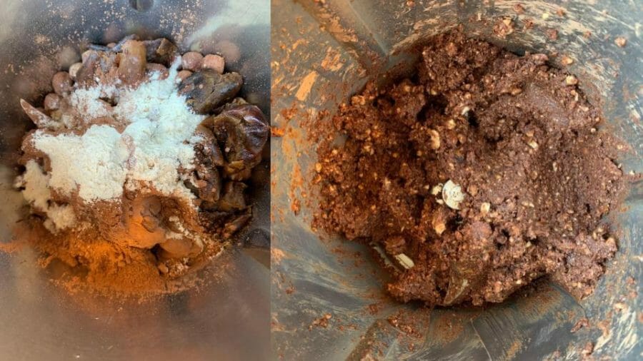 - To make the bliss balls smooth – mix the hazelnuts and dry ingredients on their own first before adding the dates.