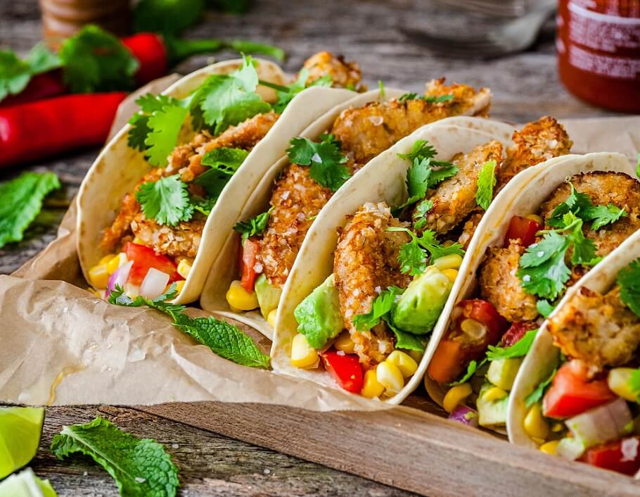 Spiced Quinoa Crumbed Chicken Soft Tacos