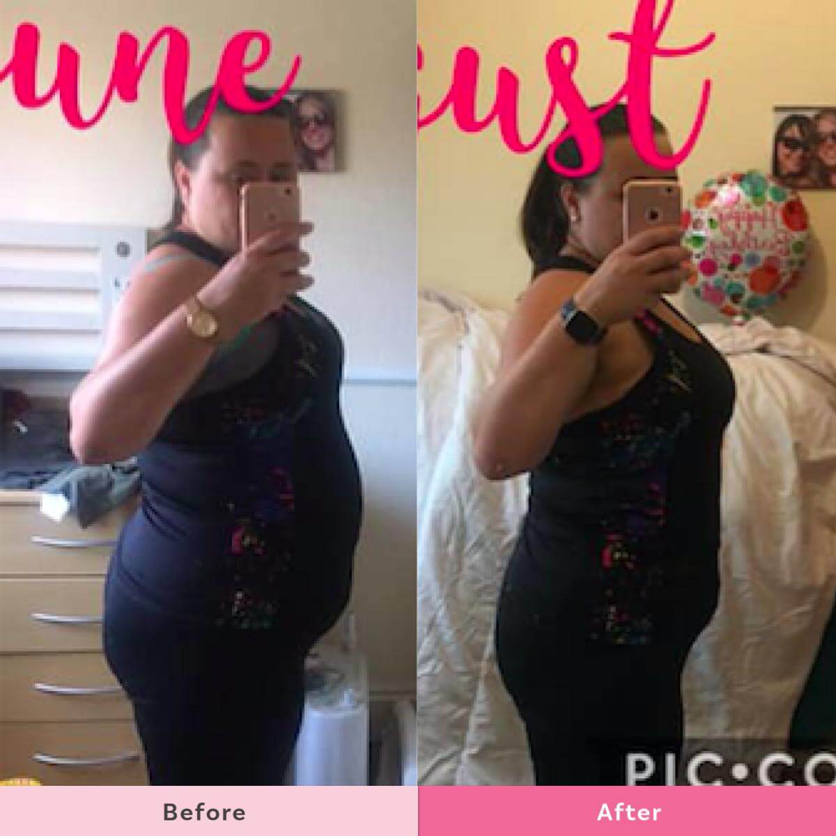 Maria says “I’ve been with The Healthy Mummy two years now and I love the Healthy Mummy ways. When I was on my all-inclusive holiday last August (pic on the left) I made sure I got my monies worth!!!! I ate loads, drank lemonade and got desserts every meal!!! The result was this, a bloated belly, my bikini body that I had worked so hard for was gone my own fault for being weak!!!