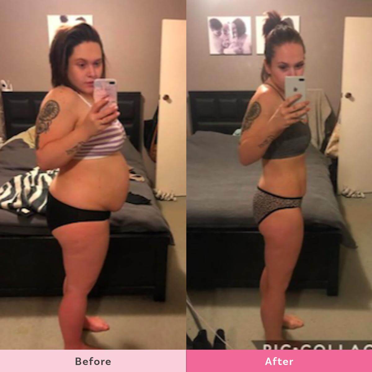 She says “I was so worried during my second pregnancy that I’d never get my pre-baby bod back but here I am even better 9 months later. I’m now lighter than when I fell pregnant with my son”.