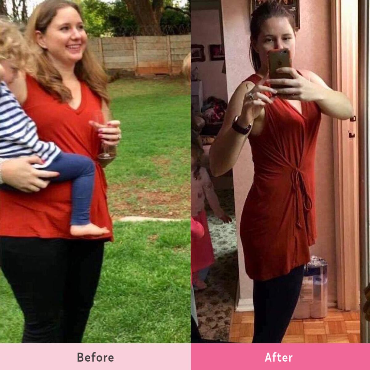Fast forward to now, the REAL me thanks to five months with the 28 Day Weight Loss Challenges. My daughter picked the top for me to wear to a party on Sunday. It is the same top and I felt comfortable and confident! Healthy Mummy has changed my life.”