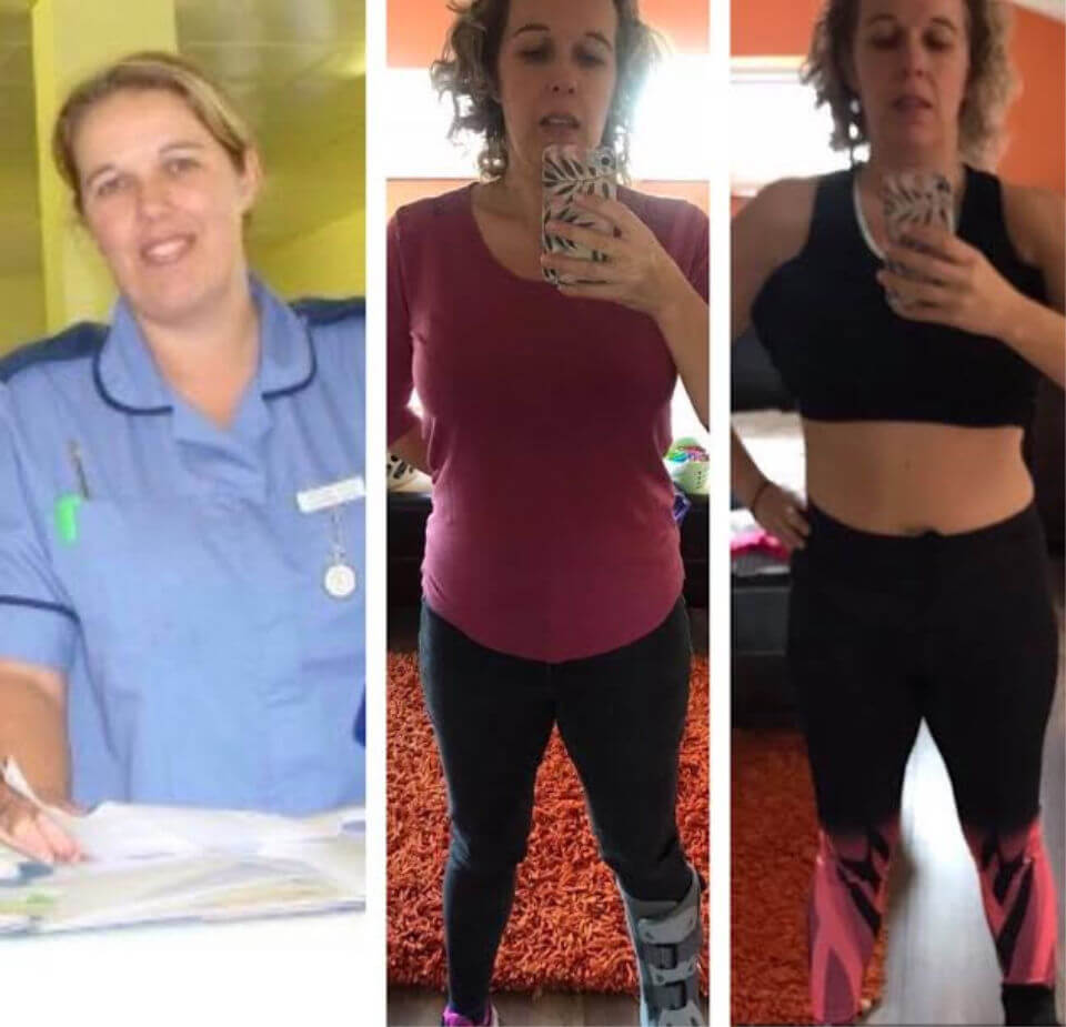 Vanessa says, “First photo is pre children when I thought I was fit and healthy! Second photo one month ago when I broke my ankle, and last photo today!