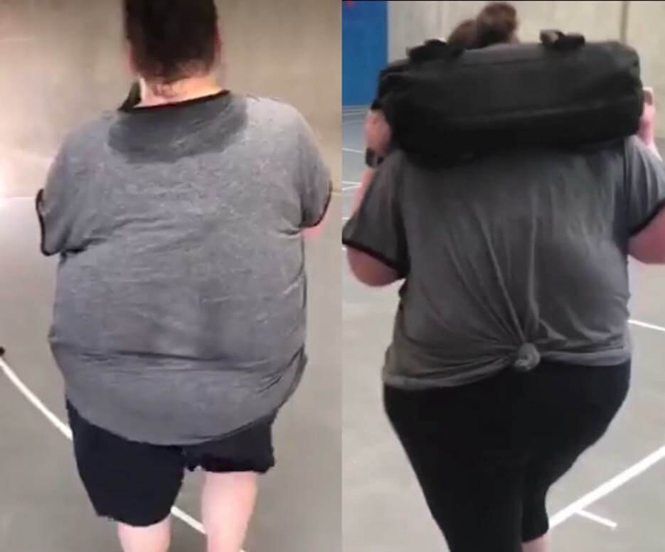 Her first victory? Having to tie a big knot in her shirt that is now too big! With her body changing so much she says “I need to tie a knot in my top because it’s way too big for me now”.