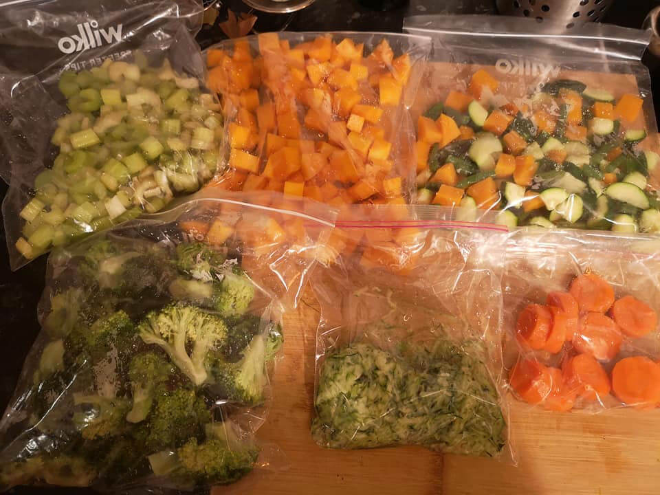 Maria says that she pre dices all veg and fruit and places in freezer bags. She says this “saves so much time and MONEY.”